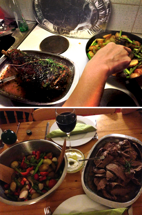 I lilla huset handlar det mycket om att Àta och mÄ gott i varandras sÀllskap. Mina bilder gör inte den hÀr lammbogen rÀttvisa. Jag tror alla utom bus hade haft en hand i tilllagningen sÄ devisen ju fler kockar dess sÀmre soppa. För det hÀr var sÄ sjukt gott att jag önskar att jag bara orkat Àta mer. Det hÀr ska vi försöka göra hemma, men jag Àr rÀdd att vi inte kommer kunna Äterskapa det.