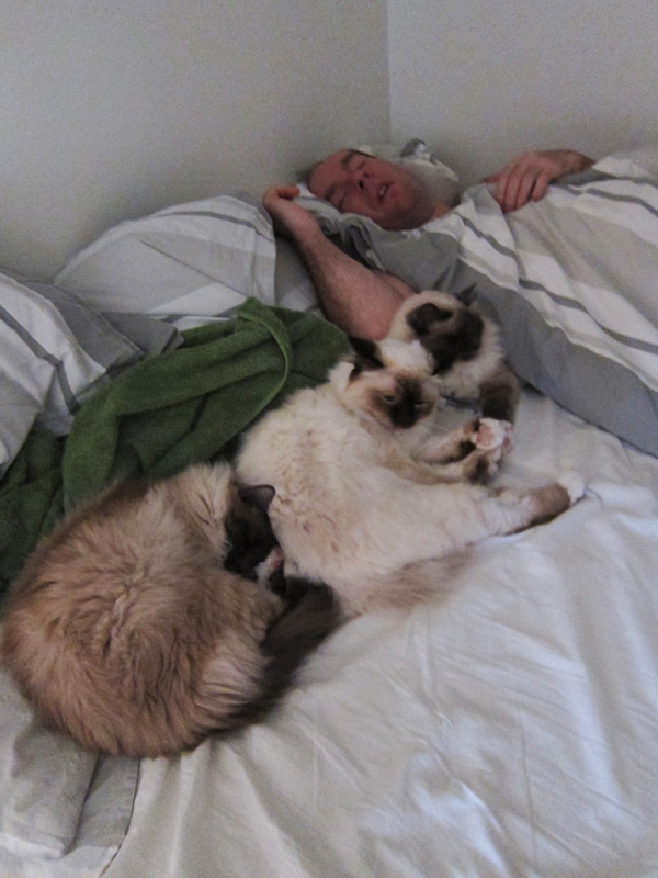 Ha ha… đ SĂ„ dĂ€r nĂ€ra har _aldrig_ Maja och Saga legat varandra. Vi tycker att det Ă€r gulligt om de rĂ„kar ligga i varsitt hörn av samma sĂ€ng. Saga kan nog tĂ€nka sig att gosa lite, men Maja Ă€r ju en riktig eremit.